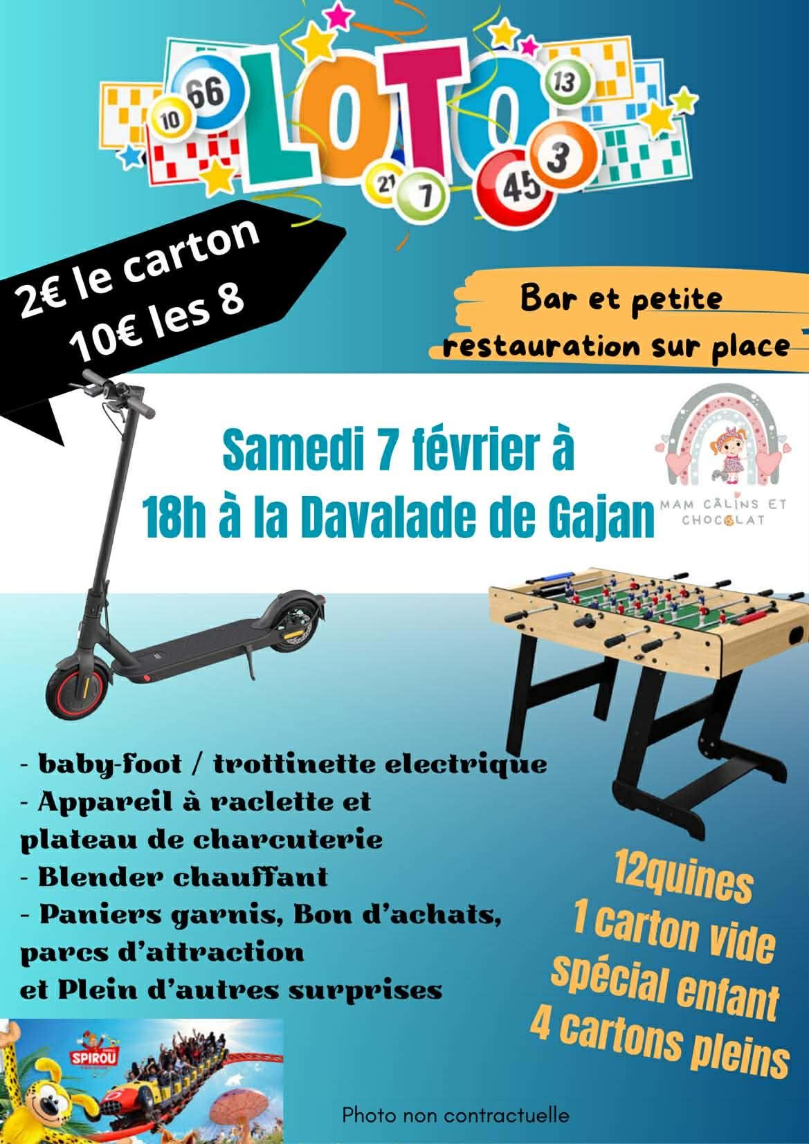 Prochains Évènements LOTO M.A.M câlins&chocolat « Tous les Évènements 7 février à 18 h 00 - 21 h 00 Détails Date : 7 février Heure : 18 h 00 - 21 h 00 Organisateur MAM Câlins et chocolat Lieu Espace la Davalade Gajan, 30730 France + Google Agenda+ Exporter vers iCal